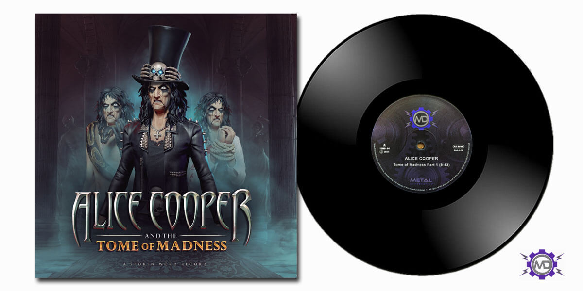 The ‘Alice Cooper And The Tome Of Madness’ 12″ record is the perfect companion piece to the official ALICE COOPER slot game that was released in 2021.