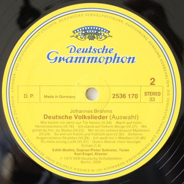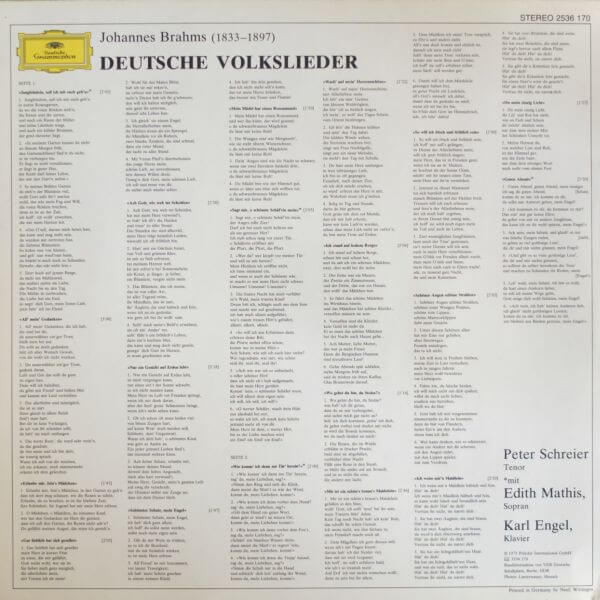 Brahms*, Peter Schreier, Edith Mathis, Karl Engel – Die Schönsten Deutschen Volkslieder – Vinyl LP