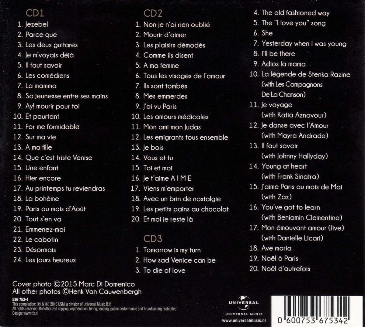 Collected by Charles Aznavour is a wonderful career overview with no fewer than 64 songs by “The best singer who ever lived”. The 3 CD digipack contains his greatest hits and most famous songs such as ‘The Old Fashioned Way’, ‘Yesterday When I Was Young’, ‘She’, ‘La Mamma’, ‘Emmenez Moi’, ‘La Boheme’, ‘For Me Formidable’ and ‘Mes Emmerdes’. Other Aznavour classics and songs from his very last album are also included. In addition to special duets, including with Frank Sinatra, Johnny Hallyday and Zaz. CD3 also contains the original French versions of his greatest (English) hits and other special material. With unique photos. The CD booklet contains unique photos and liner notes by the well-known Flemish chanson expert Bart Van Loo.