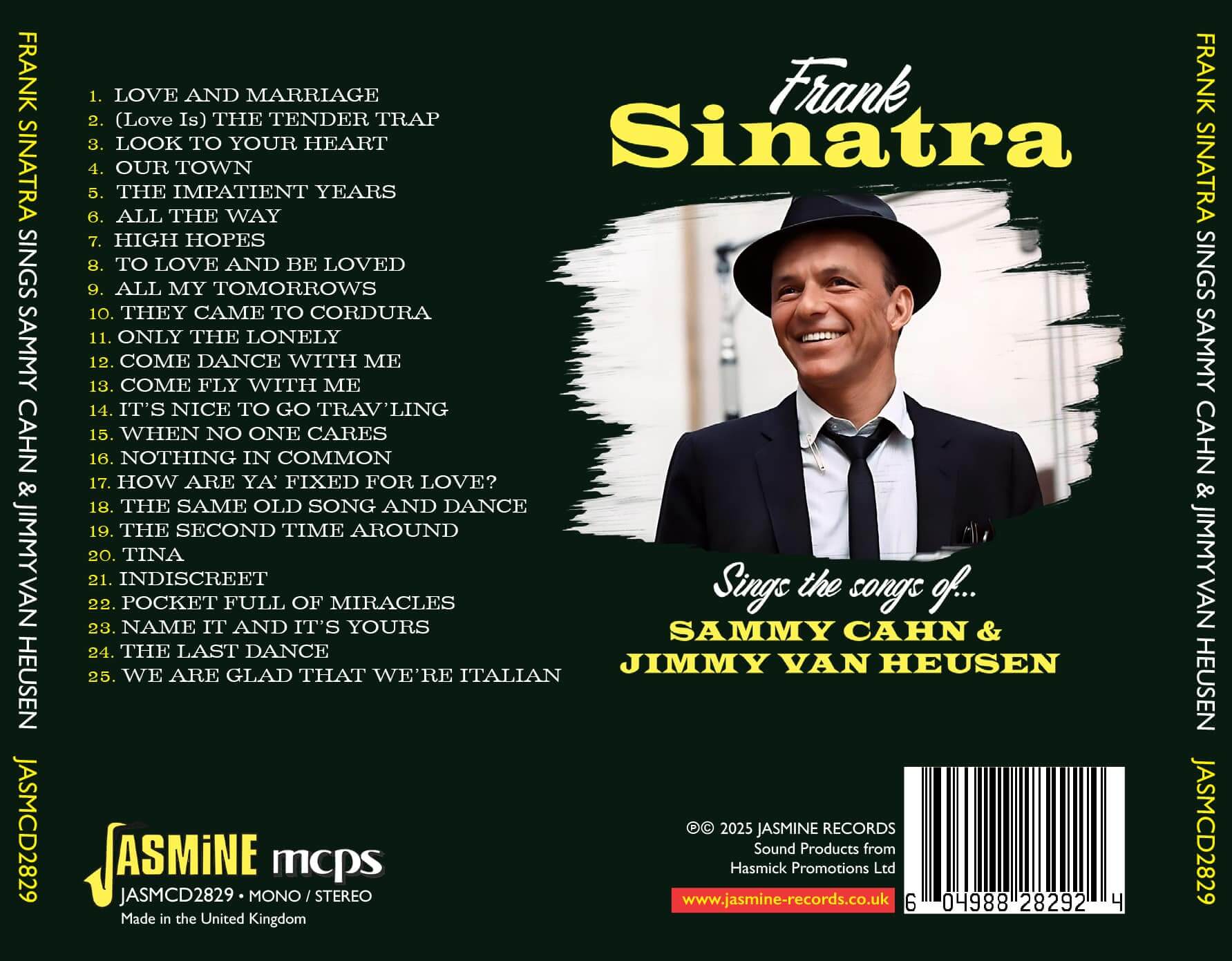 • The CD contains 25 classic Sinatra performances and songs written by Sammy Cahn and Jimmy Van Heusen who were pivotal in the singer’s success in the 50s and early 60s.
