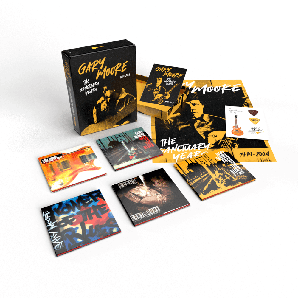 The Sanctuary Years contains 4 incredible albums from Moore’s time at the prestigious label. This deluxe package contains albums A Different Beat, Back To The Blues, Scars and Power of The Blues, whilst all containing new liner notes written by Dave Everley. Furthermore, the box includes a 5.1 (Edited) Mix of Back To The Blues and select interviews on Blu-ray, assorted stickers, poster and further memorabilia.