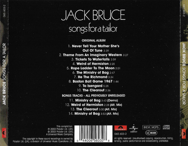 Jack Bruce – Songs For A Tailor – CD – Near Mint