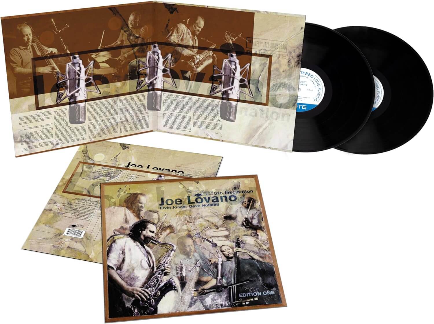 On his remarkable 1997 album ‘Trio Fascination: Edition One’ saxophonist Joe Lovano joined forces with two all-time legends – bassist Dave Holland and drummer Elvin Jones – in a spare trio setting that finds these three masters conversing freely. This stereo Tone Poet Vinyl Edition marks the album’s first-ever release on vinyl and was produced by Joe Harley, mastered by Kevin Gray from the original analog master tapes, pressed on 180g vinyl at RTI, and packaged in a deluxe gatefold tip-on Sleeve.