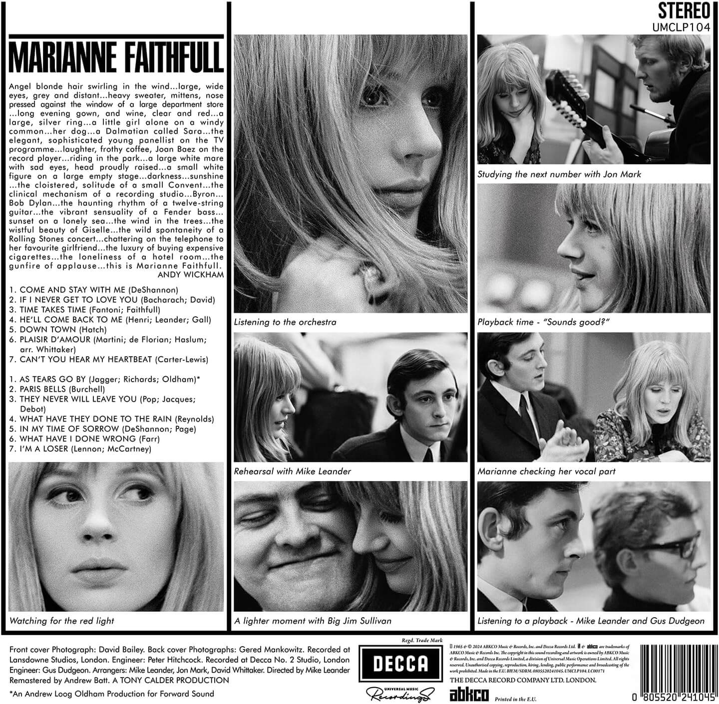 Marianne’s eponymous pop LP receives its first ever vinyl repress on a 180g re-issue that has been remastered from the original tapes by the Grammy nominated Andrew Batt who also wrote detailed sleevenotes which Marianne contributed to before her passing in January 2025. The album was produced by Mike Leander, one of the key musical forces behind the British 60s pop scene, and features a mix of popular cover versions, folk revival standards, French pop and songs written specifically for Marianne including two of her biggest hits on both sides of the Atlantic; namely her Jagger / Richards penned debut single ‘As Tears Go By’, and ‘Come And Stay With Me’ by Jackie DeShannon. Marianne contributes ‘Time Takes Time’ – her first published composition, and her guitarist Jon Mark (and key collaborator of the 60s after Mike Leander), wrote one of the albums highlights ‘Paris Bells’.