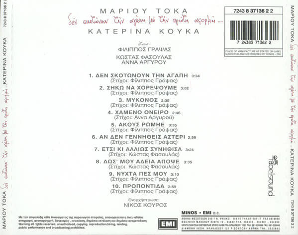 Μάριος Τόκας – Κατερίνα Κούκα – Δεν Σκοτώνουν Την Αγάπη Με Την πρώτη αφορμή – CD Mint-Near Mint