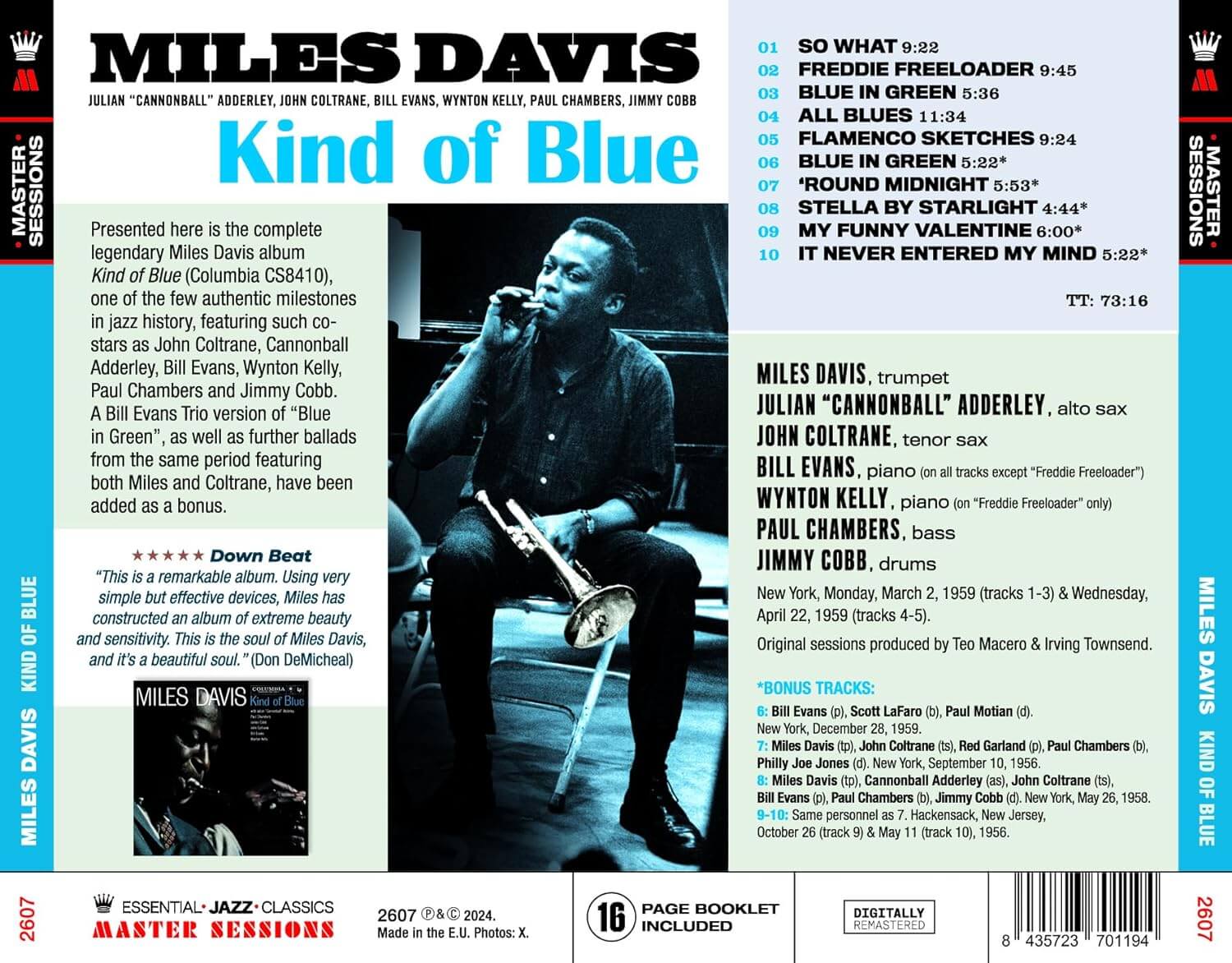 SPECIAL CD EDITION – THE COMPLETE ALBUM + 5 BONUS TRACKS – INCLUDES 16-PAGE BOOKLET WITH MEMORABILIA AND UPDATED LINER NOTES. The complete legendary Miles Davis album Kind of Blue (Columbia CS8410), one of the few authentic milestones in jazz history, featuring such co-stars as John Coltrane, Cannonball Adderley, Bill Evans, Wynton Kelly, Paul Chambers and Jimmy Cobb.