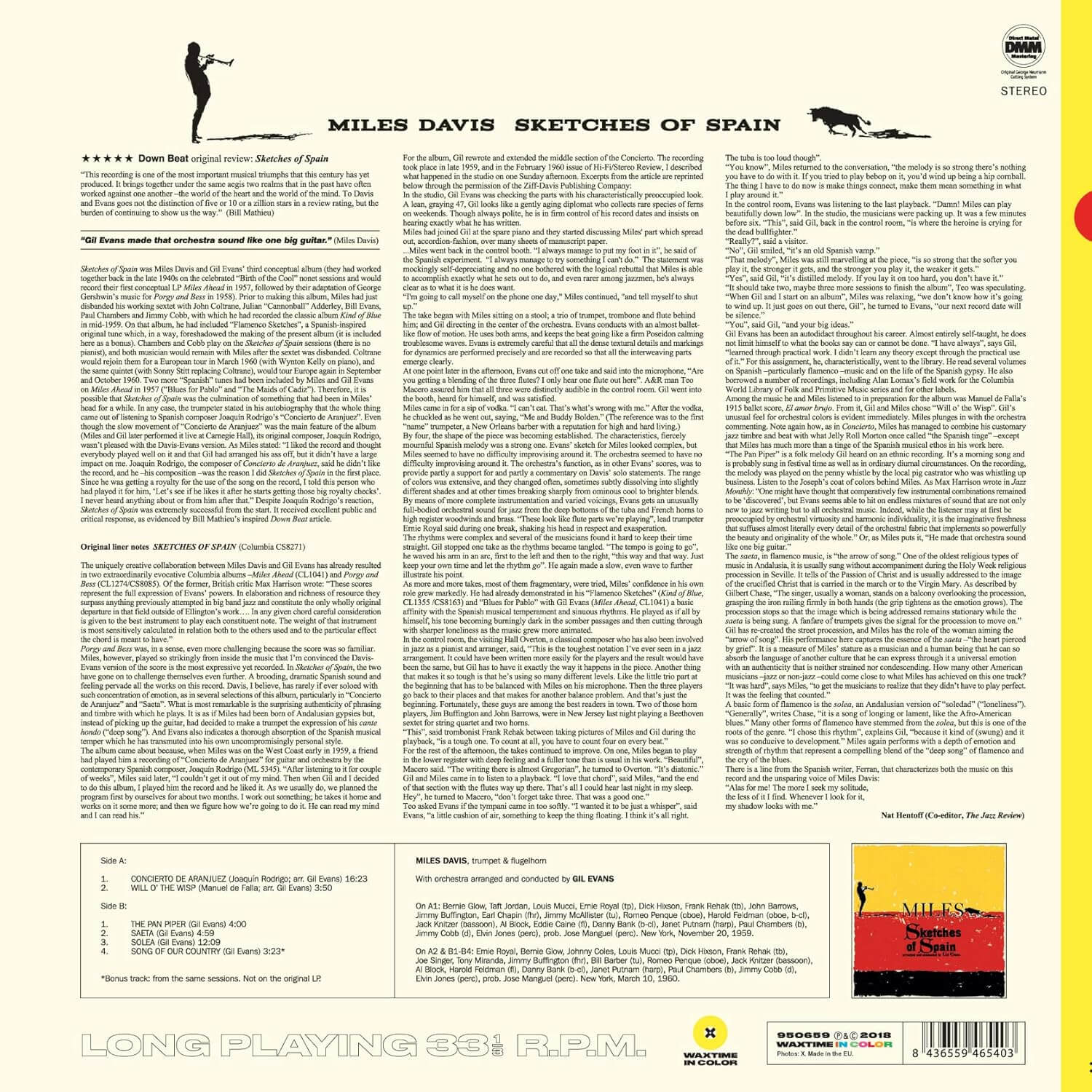 Miles Davis and Gil Evans collaborated on high-concept projects three different times during their celebrated careers. For their final act, they created Sketches of Spain, a peak moment in each luminary’s legacy. The transformative album weds Spanish themes, lush orchestrations, romantic timbres, and Davis’ increasingly lyrical methods in a tender ceremony that resonates more than six decades after its original release in 1960. Seldom, if ever, did Davis ever so expressively and liberally paint with color. And in Evans, he has a likewise-minded partner to help draw out tones, shades, layers, and textures. What they achieved continues to draw praise from the global music community. Ranked #358 on Rolling Stone’s 500 Greatest Albums of All Time and deemed “a work of unparalleled grace and lyricism” by noted scribe J.D. Considine, the Grammy Award-winning effort has never sounded or looked better.