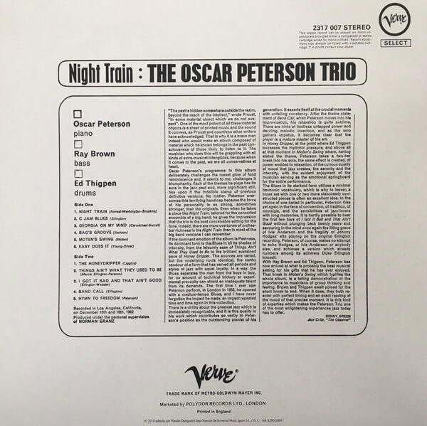 Oscar Peterson Trio – Night Train – Vinyl LP