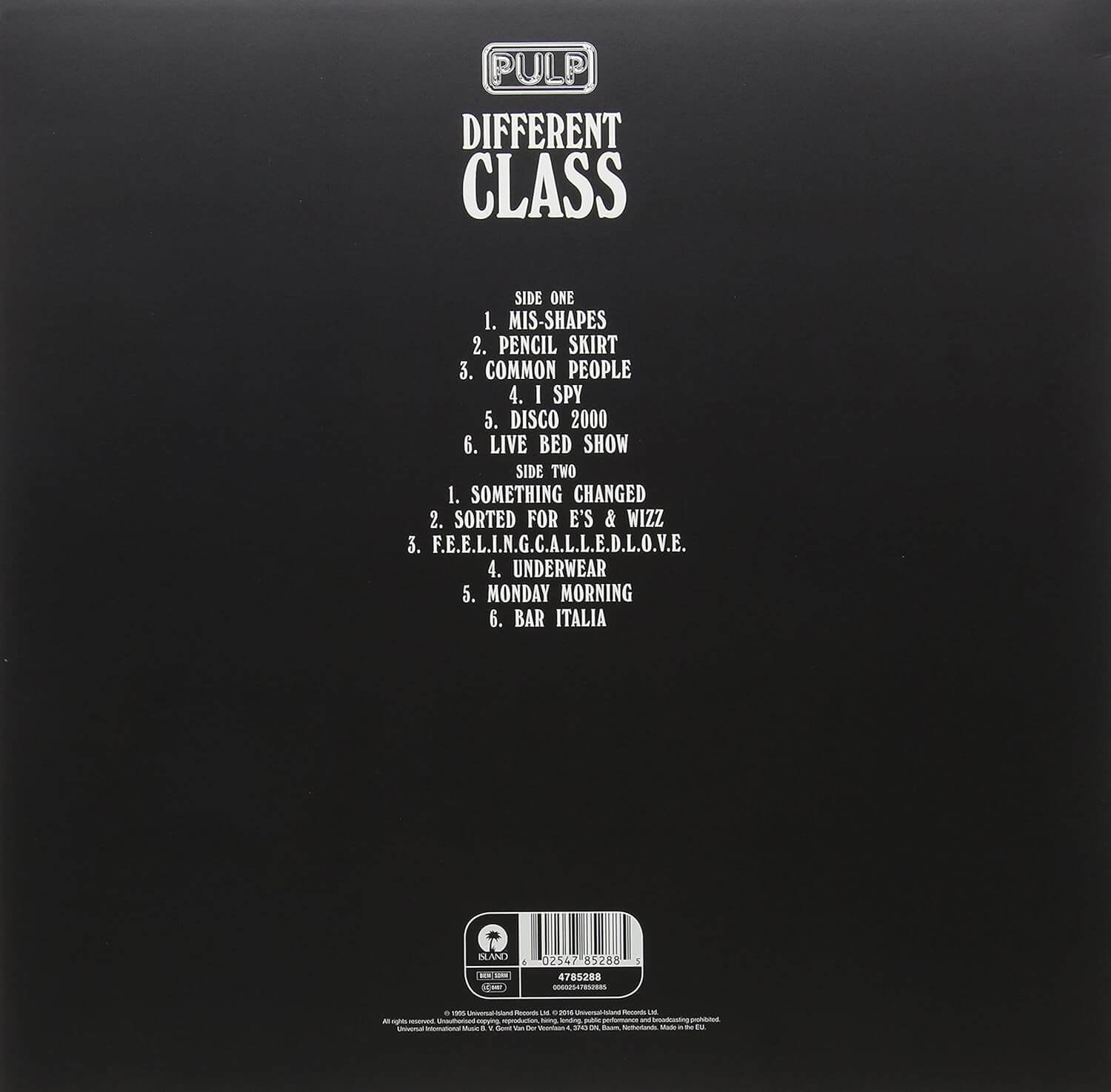 The fifth studio album by the English rock band, originally released in October 1995. The inspiration for the title came to frontman Jarvis Cocker in Smashing, a club night that ran during the early 1990s in Eve’s Club on Regent Street in London. Cocker had a friend who used the phrase ‘different class’ to describe something that was ‘in a class of its own’. Cocker liked the double meaning, with its allusions to the British social class system, which was a theme of some of the songs on the album.