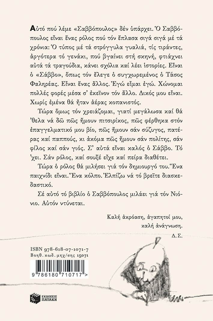 Σε αυτό το βιβλίο ο Σαββόπουλος μιλάει για τον Νιόνιο. Αυτόν ντύνεται.
