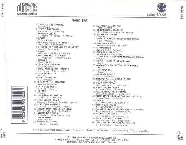 Σπύρος Μιχαηλίδης , Παραγωγή Σταύρος Ξαρχάκος – Piano Bar – Cd
