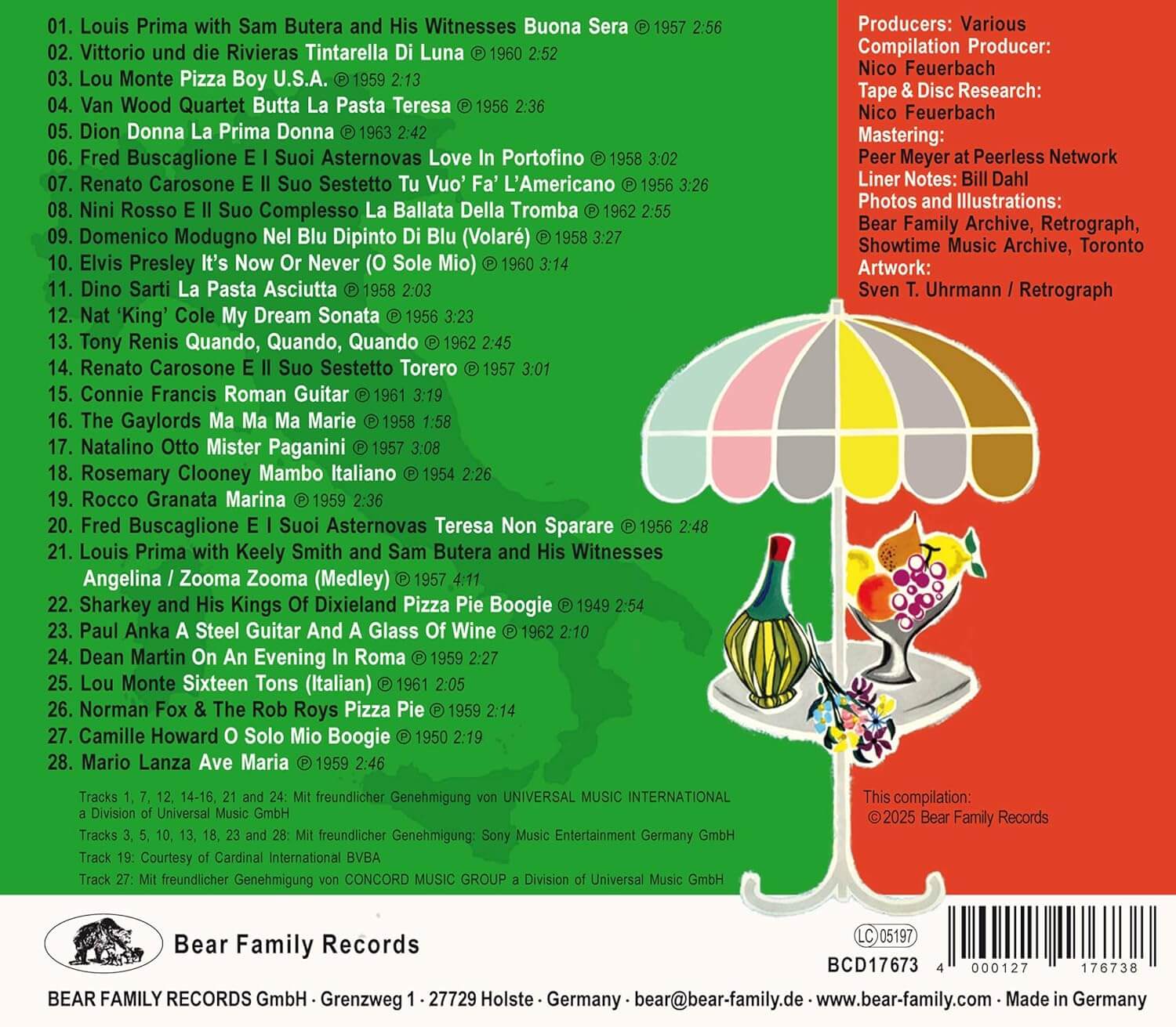 Ever think about how much fun it would be to visit Italy but not really in the mood to leave the comfort of your living room? ‘An Evening in Italy – Dining, Dancing And Romancing The Italian Way’ offers the perfect compromise, an atmospheric soundtrack for all three of those tremendously satisfying activities whether you’re sitting pretty in a lovely Venetian café or luxuriating in your own easy chair. Naturally, some of the country’s favorite sons are prominently featured -Domenico Modugno with his 1958 classic Nel Blu Dipinto Di Blu (Volaré), Renato Carosone, Natalino Otto, Fred Buscaglione, and Rocco Granata, whose Marina was an international hit in 1959. Plenty of American stars shine bright on this anthology too: operatically trained tenor Mario Lanza delivers a climactic Ave Maria following the effervescent Lou Monte (translating Merle Travis’ Sixteen Tons into Neapolitan as well as relating the romping tale of Pizza Boy U.S.A.), the eternally suave Dean Martin, Connie Francis, Louis Prima, Elvis Presley (It’s Now Or Never was an updated O Sole Mio), Paul Anka, and Dion, whose Italian-language rendition of Donna The Prima Donna brings him right back to his old ‘hood in the Bronx. A few performers you might not expect to encounter on such an ethnically themed collection are here too – Nat ‘King’ Cole, Rosemary Clooney with her festive Mambo Italiano, doo-wopping Norman Fox & The Rob Roys (their jumping Pizza Pie must have enlivened a few New York eateries in 1959), and thundering R&B pianist Camille Howard, who transformed one of Italy’s most beloved themes into her showstopping O Solo Mio Boogie. Order up a plate of pasta and a bottle of wine and dig this Italian serenade!