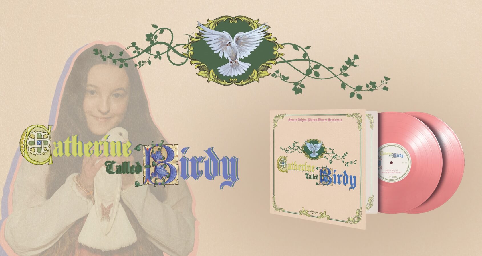Catherine Called Birdy is available as a limited edition of 500 individually numbered copies on pink & white marbled vinyl, housed in a gatefold sleeve.