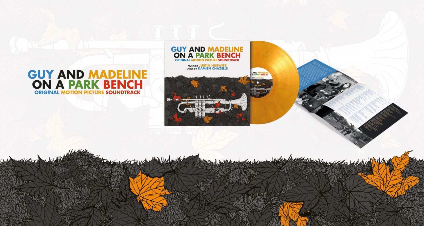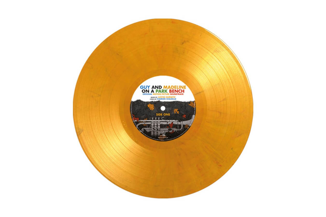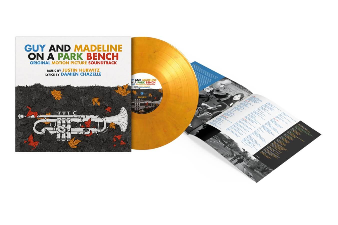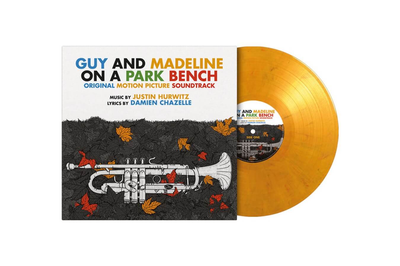Guy and Madeline on a Park Bench is available on vinyl for the first time as a limited edition of 500 individually numbered copies on orange & black marbled vinyl and includes a 4-page booklet with lyrics and liner notes by Justin Hurwitz.