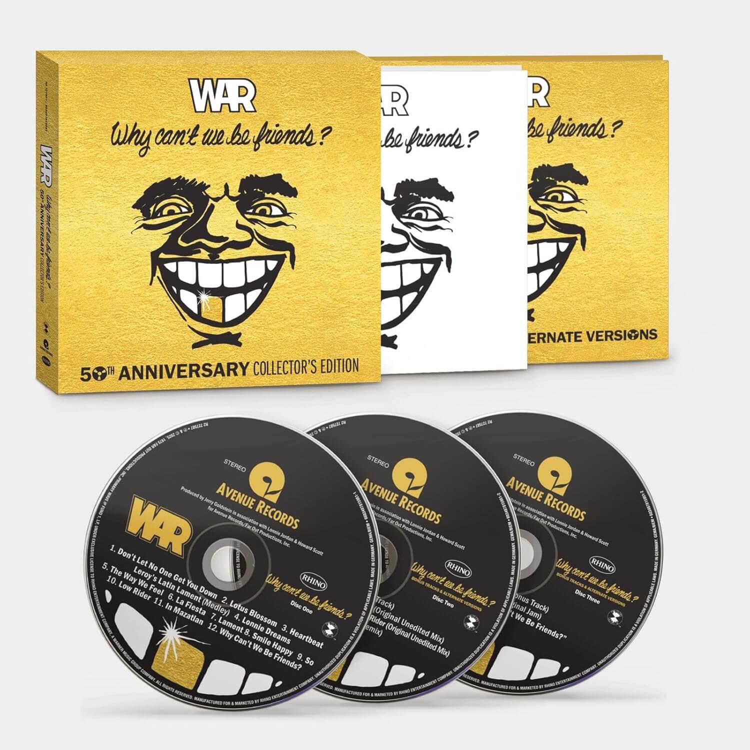 Celebrate 50 Years of the iconic, multi-million selling, Billboard 200 Top 10 Album that features classic WAR anthems like “Low Rider”, “So” and the title track “Why Can’t We Be Friends?”. This Anniversary edition features the original album remastered by Bernie Grundman, alongside two additional discs of unreleased bonus tracks pulled from album sessions and unedited mixes to fill out the Collector’s Edition set. Just in time to commemorate the genre-bending, funk-soul-jazz-pop-latin-fusion band’s 55th year together as a preeminent fixture on the Los Angeles music and cultural scene.